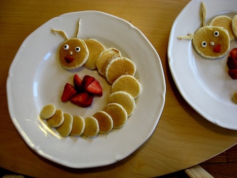 Смешная гусеница из блинчиков и клубники быстро насытит твоего малыша