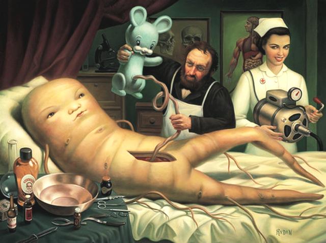 Странные — да, жуткие — нет, сказочно-прекрасные — тоже да. Иллюстрации Марка Райдена (Mark Ryden) приятно смотреть, их даже хочется пощупать. Художник и автор данных иллюстраций — один из королей поп-сюрреализма и самых известных в своей области гениев пера. Его фишка: умиление и жуть на одном полотне.
