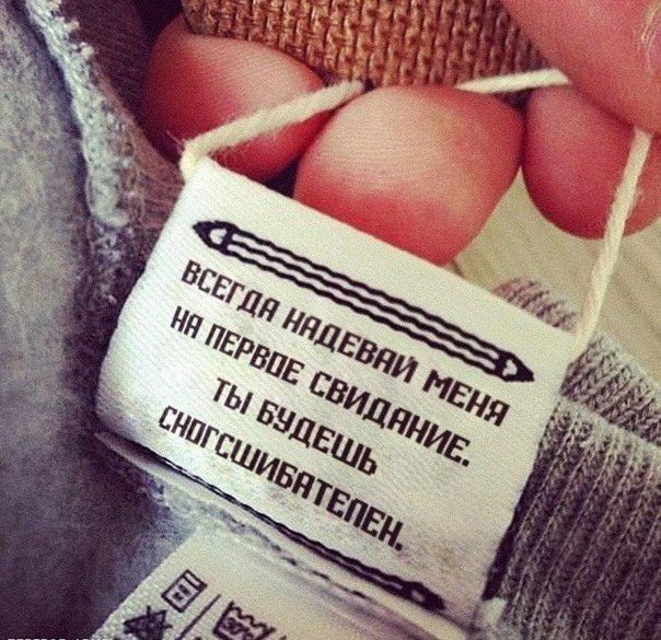 О, теперь мы точно будем внимательно смотреть, что написано на ярлыках нашей одежды! Ребятам, которые придумали это большущий респект! Посмотри, может и у тебя есть неожиданные надписи на ярлыках?