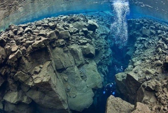 А вы знаете, что разлом между Америкой и Евразией проходит по Исландии? Более того, при желании можно поплавать с аквалангом в чистой как слеза воде, в узкой трещине между расходящимися континентами и в буквальном смысле потрогать собственными руками Европу и Америку.