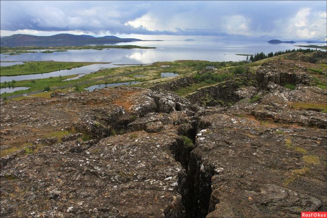 Остров Исландия расположен на стыке двух литосферных плит: Евразийской и Северо-Американской. В недрах нашей планеты происходит постоянное движение, благодаря которому плиты постоянно перемещаются. Если они наезжают друг на друга, то на месте стыка возникают горы, а если расходятся, в земной коре образуются трещины или рифты.